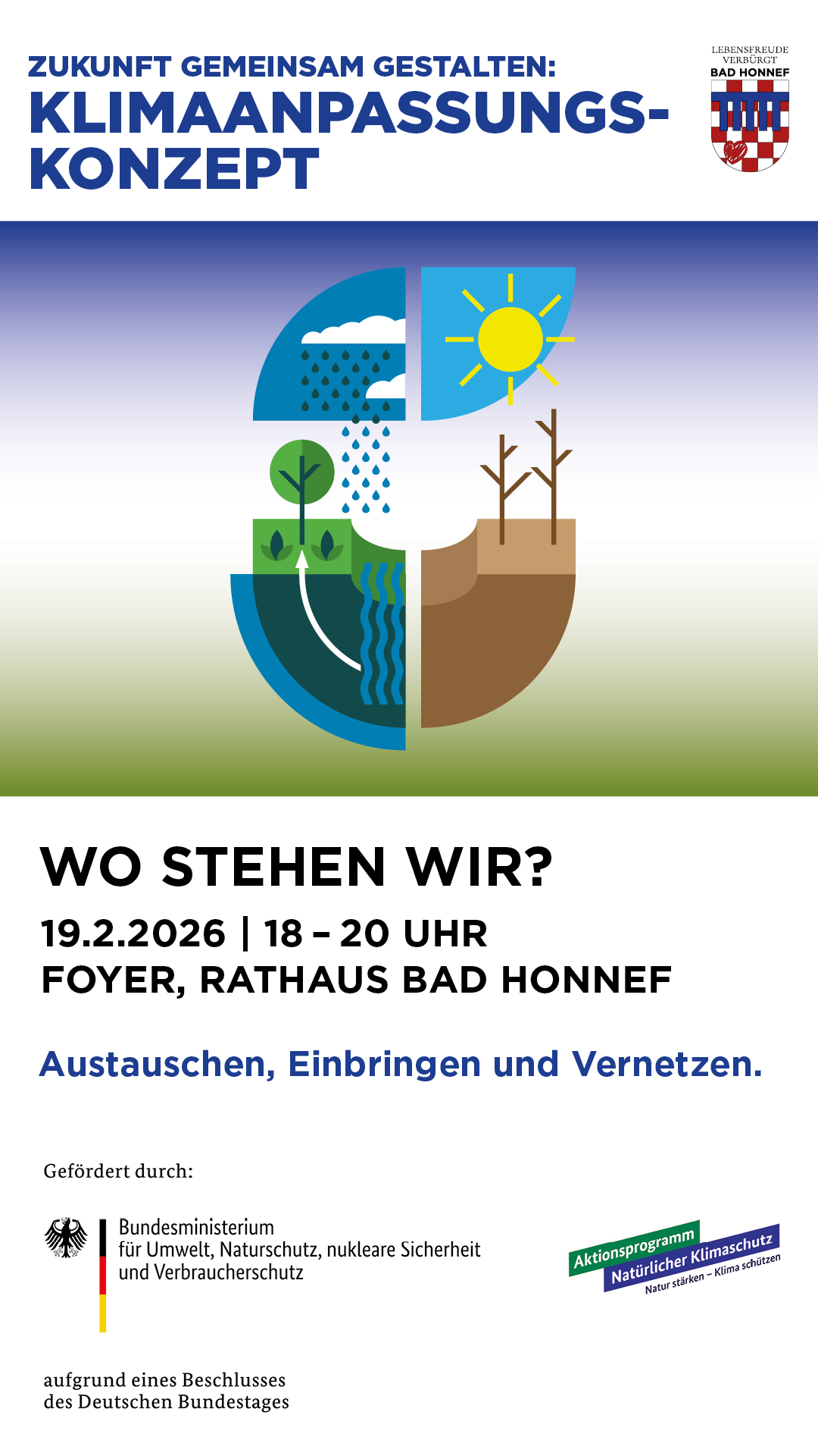 Der Klimawandel betrifft uns alle – auch hier in Bad Honnef. Steigende Temperaturen, häufigere Hitzeperioden und zunehmende Starkregenereignisse stellen unsere Stadt vor neue Herausforderungen. Um diesen Entwicklungen vorausschauend zu begegnen, erarbeitet die Stadt Bad Honnef derzeit ein Klimaanpassungskonzept. Ziel ist es, konkrete Maßnahmen zu entwickeln, mit denen wir unsere Stadt besser vor den lokalen Folgen des Klimawandels schützen und unsere Lebensqualität langfristig sichern können.